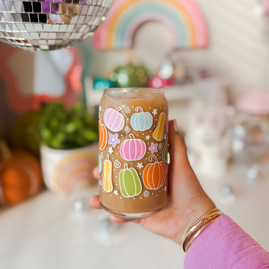 Colorful Pumpkin Patch Glass Cup