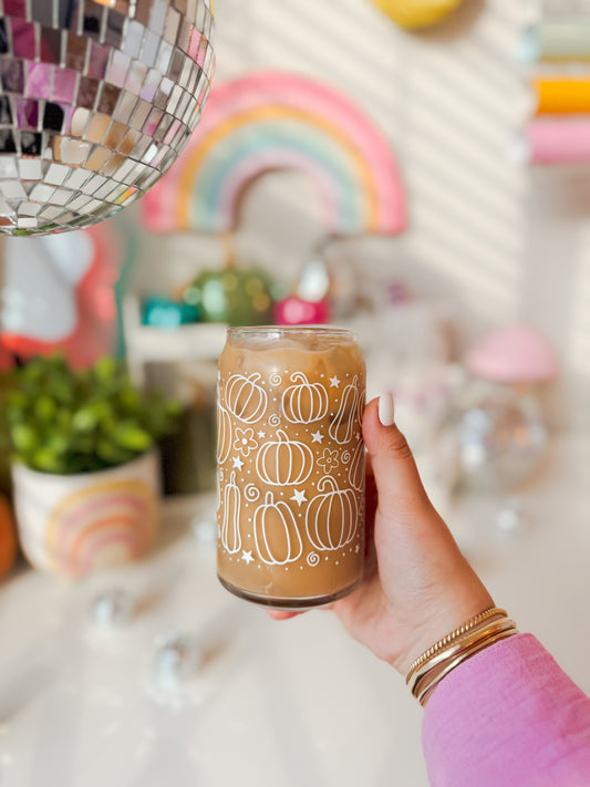 White Outline Pumpkin Patch Glass Cup