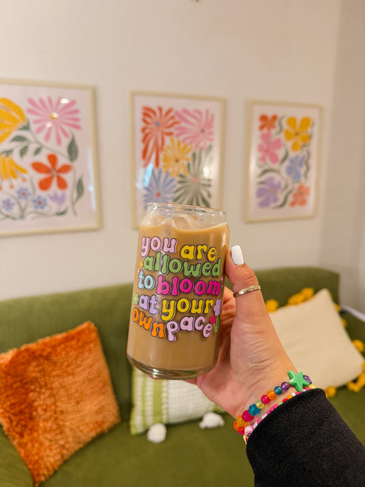 You Are Allowed to Bloom At Your Own Pace Floral Glass Cup