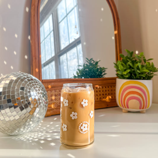 Good Things Are Coming White Daisy Glass Cup