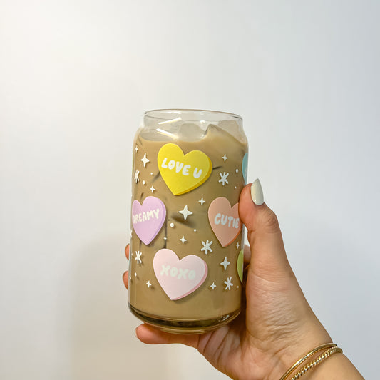 Iced Coffee Candy Hearts Glass Cup | Valentines Day | Galentine’s Day